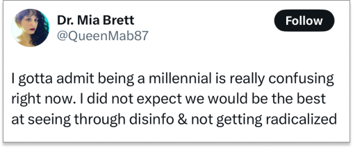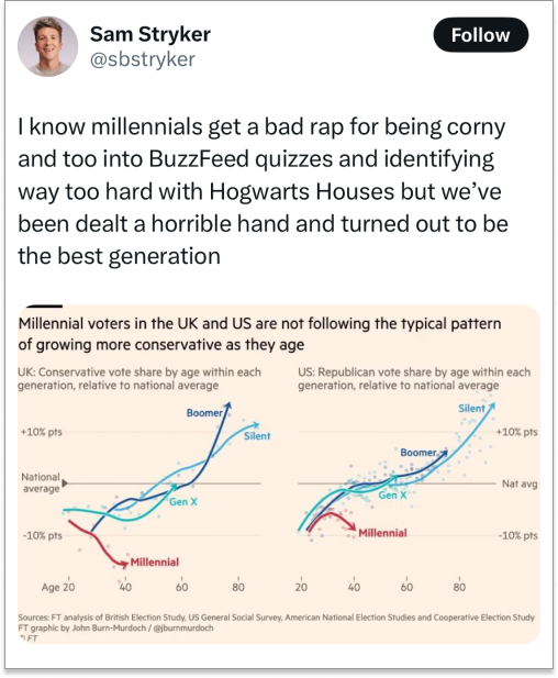 As I’m sure you’ve also experienced, there’s been a lot of blame-gaming in the wake of a very disappointing election. One group that seems to be consistently coming out on top in the discourse is millennials. We’re surprisingly resistant to the right-wing misinformation that has mesmerized much of Gen Z, and less willing to turn conservative like our Boomer parents as we age.