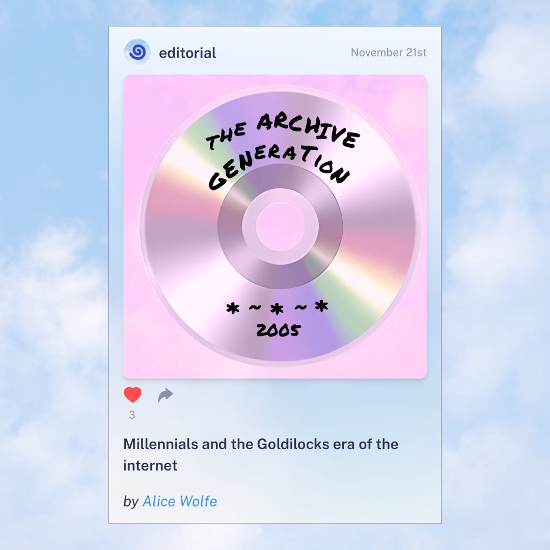 As Alice Wolfe explains in our latest piece, millennials had the unique opportunity to explore their identities and interests in public, without the monetized pressures of today’s platforms. Today’s teens aren’t so lucky, pressured to create a polished alter ego that determines their digital value and social clout. Their unedited selves are relegated to a labyrinth of camera rolls and private accounts, where they are rarely shared or seen.