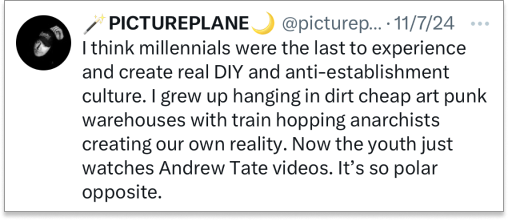 Maybe this all has something to do with millennials growing up in the Goldilocks era of the internet.